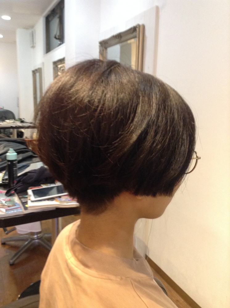 ツーブロックショートボブがまとまりやすくキュートに 自然なカラー+トリートメントも